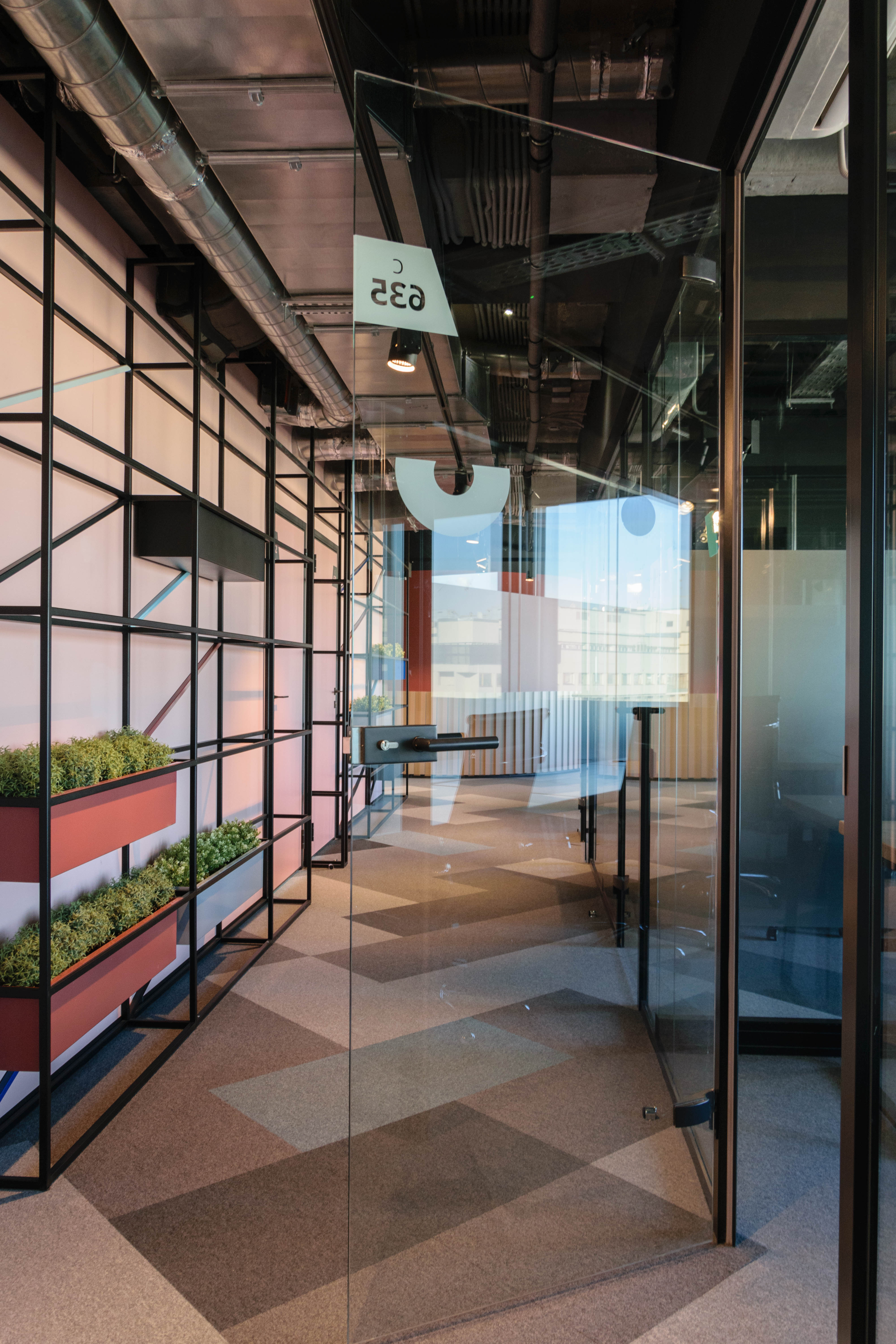 Компания NAYADA выполнила полный объём работ по производству и монтажу цельностеклянных перегородок и дверей в этом коворкинге. Стены офисных коридоров выполнены с помощью перегородок NAYADA-Crystal из закалённого стекла в один слой.